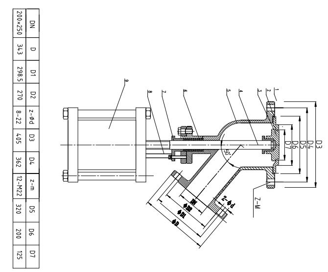 國標法蘭DN250,內孔是250mm,當用戶直接把國標法蘭焊在反應釜底的時候,我們的下料口并不是250mm,我們還需要一個閥座外徑為250mm,內孔為180mm套在反應釜底部法蘭,這時留給閥板的位置只有直徑為180mm,則下料口直徑為180mm。假如由廠家提供反應釜底下的法蘭,廠家提供的DN250法蘭,內孔會開設到285mm,在套上外徑為285mm的閥座上去,內孔留有200mm。